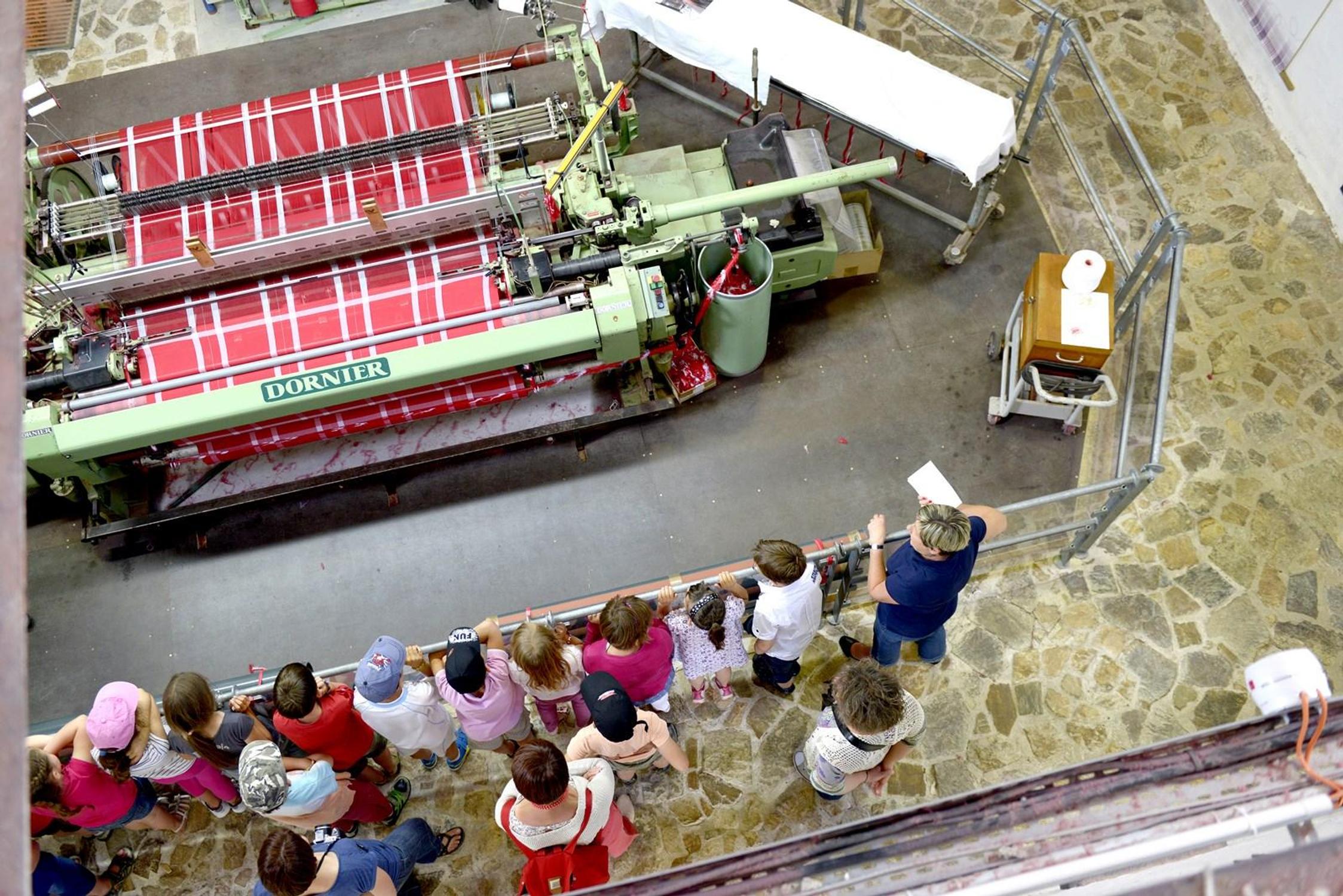Dans le bâtiment d'accueil, trois d'entre eux, de 1910, 1930 et 1950, sont activés par des techniciens démonstrateurs. Les élèves sont plongés dans l'ambiance des usines de tissage. Les navettes entrent en action, attention aux oreilles !